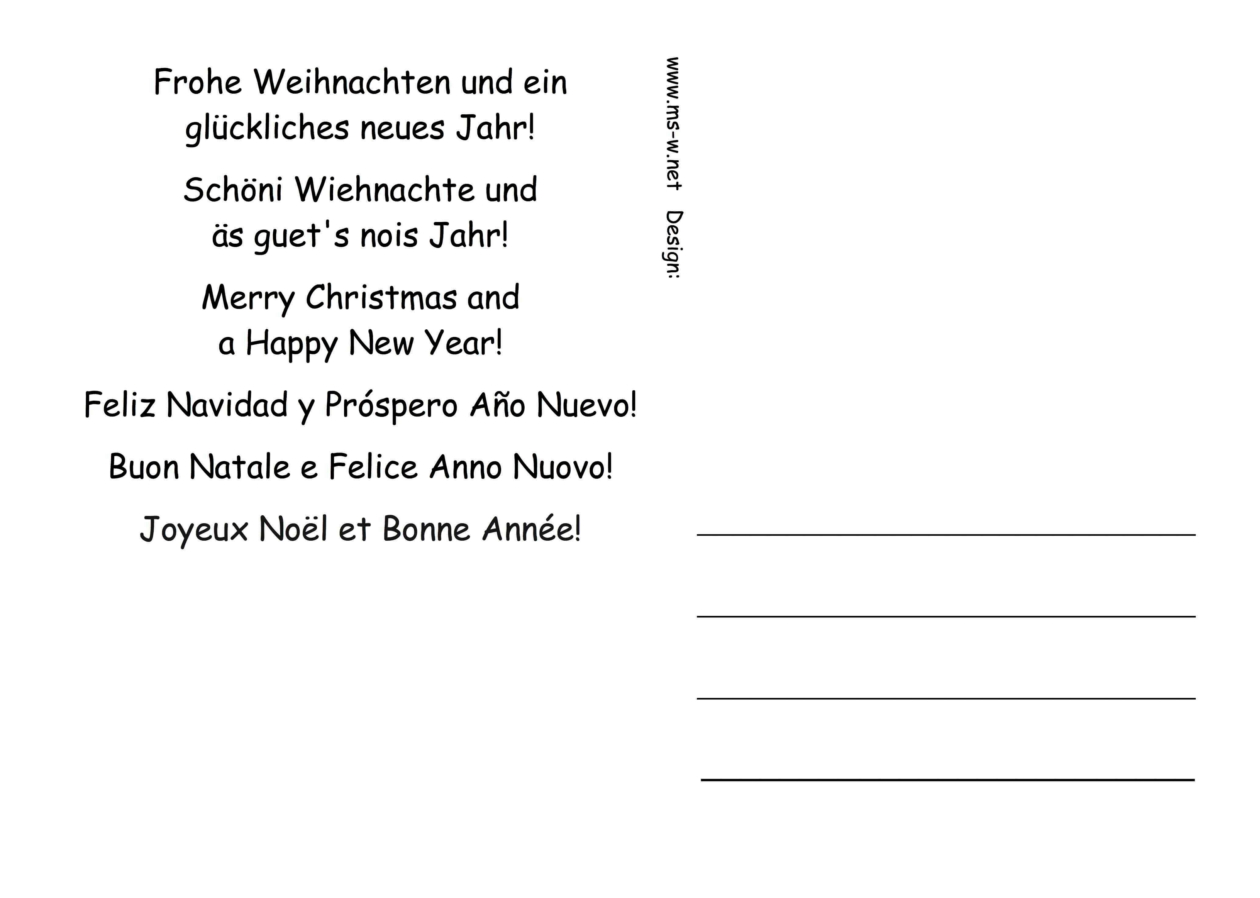 Design Esther. Die Karte hat das übliche Format von 14,8 x 10,5cm. Auf der Rückseite ist "Frohe Weihnachten und ein glückliches neues Jahr" bereits vorgedruckt.