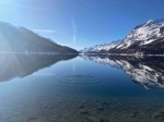 Die Weihnachtskarte 2022 zeigt eine winterliche Berglandschaft, die sich spiegelklar in einem ruhigen See widerspiegelt ❄️🏔️