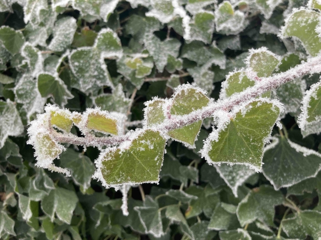 mit Reif und Schnee überzogene Blätter, ruhig und detailreich eingefangen ❄️🌿
