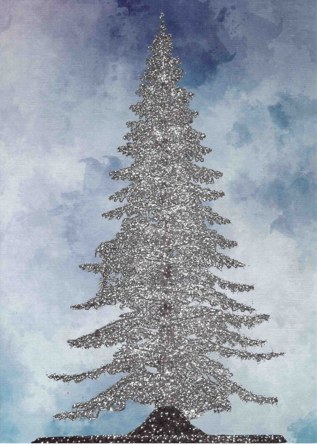 Die Weihnachtskarte 2024 zeigt einen stilisierten Weihnachtsbaum in silbernem Glanz ✨🎄